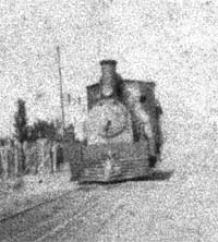 La fotografía de calidad muy inferior es agrandada de una tomada en Trelew en los años 1920. Creo que muestra una de las locomotoras ex FC Central Norte que pueden ser reconocidas por los lados paralelos al humero. Un farol más chico ha reemplazado lo mostrado arriba. Parece que la máquina es viva. La ilustración de abajo es una ampliación de una porción de un postal mostrado en otra parte de este capítulo. Se ve un tren especial llegando a la estación Puerto Madryn con una muchedumbre de gente. Claramente la máquina es una de las del FC Central Norte.