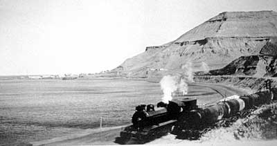 La foto de abajo muestra la estación Comodoro Rivadavia desde el oeste en los primeros años del ferrocarril.