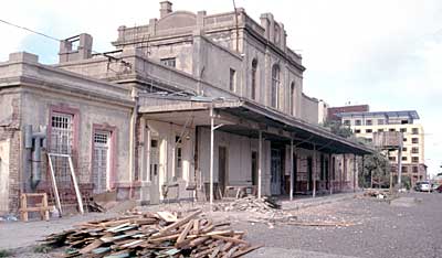 Las estaciones pequeñas no fueron tan robustas como la principal. Debajo se ve el edificio en Km 5 después del levantamiento de las vías.