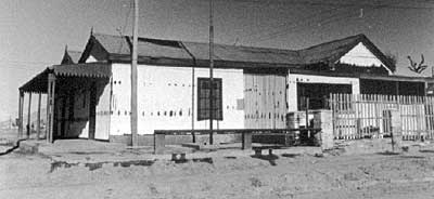 Se encontraba el galpón de máquinas principal en Km 5. Esta vista muestra el frente del galpón de estacionamiento de dos vías; la jerarquía y los empleos están al frente de dos pacífico en los años 40.