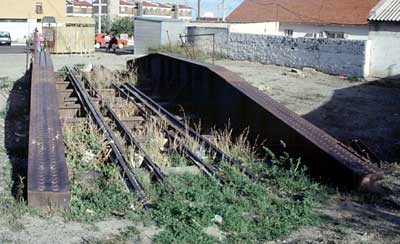 Servicio de pasajeros Al fin de 1952 se extendió la ruta cerca medio kilómetro hasta el Arroyo Vírgenes profundo que formó un límite práctico cerca cabo Punta Piedras. Se formó un globo de inversión en la terminal nueva en reemplazo del triángulo en la punta de rieles antigua. En el mismo tiempo, se propusieron unas adaptaciones minores al otro extremo de la ruta, pero no se si se construyeron. Tenían la intención las modificaciones abrir las curvas y minimizar el conflicto entre los usuarios de la estación principal y de la playa en Comodoro Rivadavia. También parece que el Ministerio de Obras Públicas estaba intentado de transferir la responsabilidad de la línea a Gobernador Militar de la zona. En 1954 la línea era notada como pertenecía a la Dirección General de Puertos dentro la responsabilidad del MOP. Línea Económica a Punta Piedras Dibujos técnicos emitidos en aquel tiempo hace claro que el FCNP tenía la responsabilidad para los mejoramientos necesarios para el uso por pasajeros, pero otra correspondencia indicaba que el FCNP no pensaba que era el propietario de la línea. Unos de los mejoramientos era la provisión de una facilidad para inversión en Punta Piedras. Este heliógrafo muestra las dos alternativas propuestas, y la limitación producida por los dos pozos petroleros. Ambos necesitaban que el tren inversa su dirección de marcha dos veces. Es interesante notar que la raqueta, por lo que siempre la máquina tiraba el tren tenía un radio mínimo de 100 m, y el triángulo, que necesita el empujón del tren, era de 120 m. (7C) El invierno de 1954 dañó la línea y en la primavera era evidente que no podía transitar el tráfico. Un informe de la condición fue preparado en octubre de 1954 para la oficina jefe en Puerto Madryn, notando, y ilustrando con fotos, la erosión del terraplén por el mar, la tierra arrastrada por los desaguaderos bajo el camino a su lado y secciones cubiertas de arenas barridas por el viento. No hemos descubierto el proceso de hacer las decisiones que siguió; sabemos que temprano en verano (3 de enero de 1955) las reparaciones de la línea hechas por la firma de Marca eran declaradas terminadas y satisfactorias, que presumiblemente permitió el recomienzo de los servicios. Aquí es un ejemplo de los daños hechos en la hora de alta marea. (7B) Y el resultado de la arena barrida por el viento. (7B) Esta muestra la línea un poco después de la hora de marea baja y la confusión de las obras defensivas que ha sido hecha. Coches motor y coches de pasajeros La foto notada en el parágrafo previo. Note el salvavidas sobre el furgón a la derecha. Claramente estaba un servicio de pasajeros a Rada Tilly. En febrero de 1953 ocurrió un accidente muy grave el tarde de un domingo con un coche motor volviendo desde Punta Piedras. Corriendo demasiado rápidamente por un pendiente cerca Playa 99, quitó los rieles y unos veinte cinco pasajeros fueron matados (3). Ricardo das Neves escribe (4) que su padre había ido a Rada Tilly aquel domingo, estando muy buen tiempo. Él perdió el último coche motor y comenzó volver a pie. Pasando por una curva encontró el descarrilamiento. Se dice que el conductor era emborrachado. Un pasajero se quejó de la velocidad, y el conductor incrementó la velocidad no la disminuyó. La lista de victimas incrementó cuando el coche cayó en el proceso de volverlo al vertical con unos pasajeros todavía adentro. Se dice que el coche tenía 48 asientos, pero estaban 75 pasajeros. El titular de El Rivadavia identificó como Coche Motor 52. Él formó el tren 130. Esta foto alarmante muestra los fragmentos restantes de coche motor No 52 siguiendo el accidente (8). Presumiblemente la vía es colocado sobre el terraplén a la izquierda donde el fotógrafo estaba a pie. La dirección de vista es hacia el noreste con el mar en el fondo y Cerro Chenque en la bruma. Había sido volviendo el coche a Comodoro Rivadavia, y por tal razón debía sido viajando desde la derecha hacia la izquierda; no obstante la miriñaque tiene su frente hacia la derecha. ¿Fuera el coche andando atrás, no obstante el globo de inversión en Punta Piedras, o se invirtió por completo por resultado del accidente? Muestra la foto que No 52 era uno de los con extremos redondeados y parabrisas único, pero con miriñaque de madera como en las máquinas a vapor. La hoja de datos del FC Patagónico de 1956, tres años después del accidente se nota los coches motor No 52 y 4 como fuera de servicio. La misma hoja nota coche de primera clase No 1104, y de segunda clase los No 1207 y 1210 como en servicio. Cada uno estaba anteriormente en Puerto Madryn y otra vez es posible que se fuesen enviado a Comodoro Rivadavia por consecuencia del accidente. Los últimos años Una referencia reciente parece indicar que el accidente de 1953 resultaba en la suspensión de los servicios de pasajeros (5). Es claro que se discutió la posibilidad de clausura antes 1955. No obstante, la clausura definitiva fue el 20 de agosto de 1958 (6). Fueron desmanteladas muy rápidamente las vías. En 1975 existían vías de trocha 75cm en el puerto y unos vagones, pero no había ninguna indicación de su explotación. Reliquias sobrevivientes Más fotografías References: Alguien con interés en fotos viejas de Comodoro Rivadavia debe visitar al sitio web del Señor Miguel Fiordelli. Hay unas fotos de interés ferroviario. Se pueden ver casi todas de las fotos agrandadas. Pulse sobre las ilustraciones chicas. 23-2-2018 |