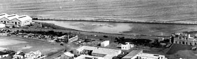 Esta primera ilustración muestra el primero de los galpones construyéndose cerca 1928. El muelle nuevo de hormigón extiende desde la izquierda central, pero sin su grúa enorme. A la derecha se ven el par de vías de trocha 75cm al lado de la ancha, con una curva larga hacia el lado sur del galpón nuevo. Es posible que esta vista fuera tomada desde el techo del edificio principal de la estación; gentileza el Señor Miguel Fiordelli. Una vista similar con una de las dos Baldwin y un par de filas de plataformas (8). Unos años más tarde, y el galpón está listo (izquierda extrema) y el rompeolas está construido para proteger el área a ser ganado. A la derecha extrema está la estación. Los terrenos ganados al mar Ahora la reclamación comienza. Aquí están dos vagones en desvíos y una línea hacia la derecha que es la curva dicha arriba, curvando al lado del galpón desde donde fue tomada esta foto.